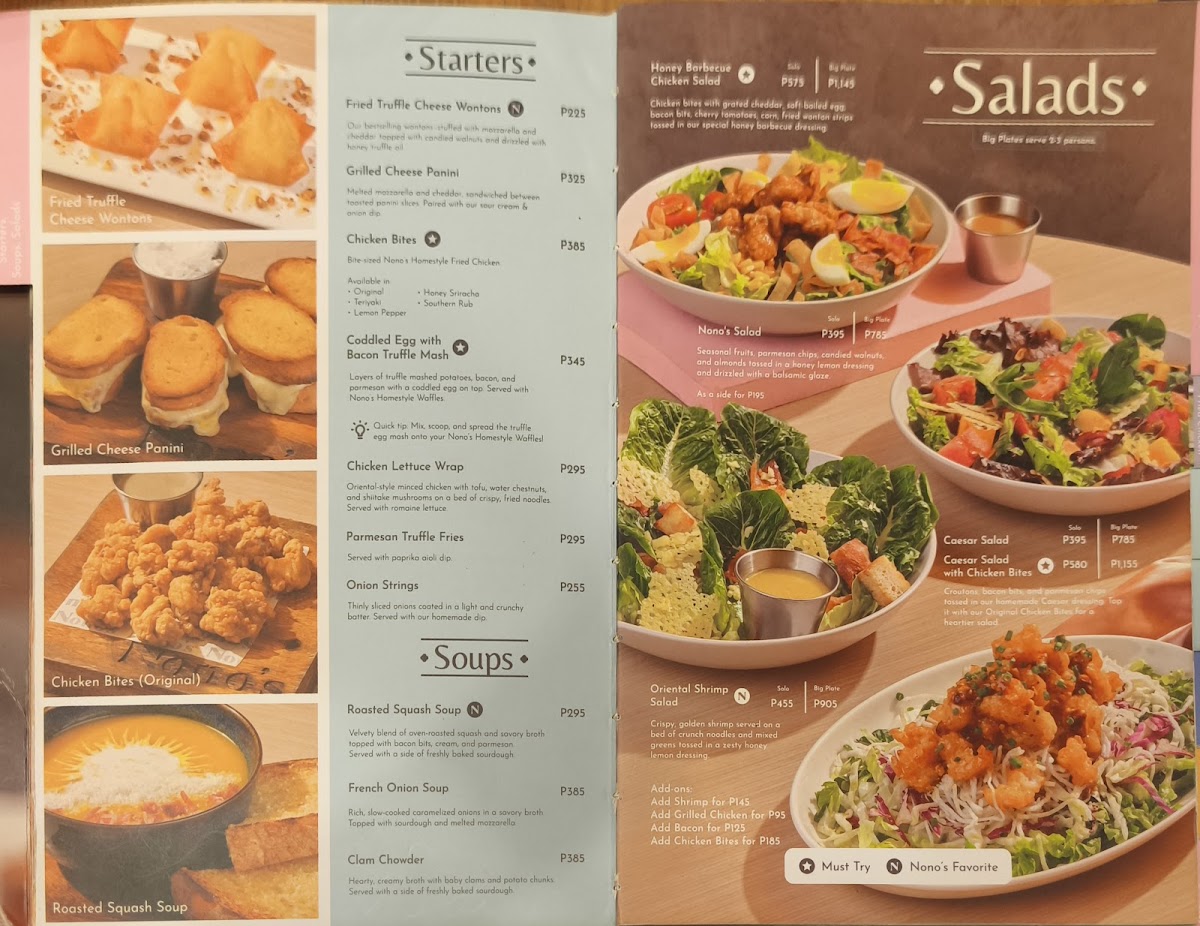 Welcome to Nono's UP Town Center, a delightful culinary haven situated in the bustling heart of Quezon City. Known for its comforting dishes and warm ambiance, Nono’s menu caters to a variety of tastes and occasions. The highlights include their succulent buttermilk fried chicken, renowned for its juicy tenderness and crispy exterior, making it a crowd favorite. Another must-try is the truffle pasta, which boasts al dente noodles enveloped in a rich, creamy sauce that tantalizes the palate with earthy notes.